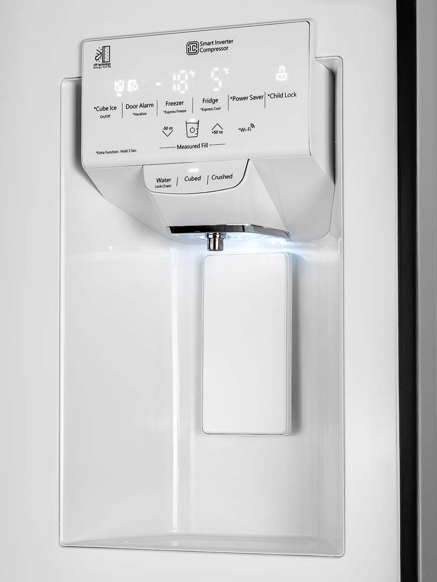 دارای هوم بار با درب فلزی، نمایشگر روی درب، قابلیت تولید یخ مکعبی و یخ خرد شده، آبسردکن هوشمند با قابلیت آبگیری با حجم دلخواه، مجهز به فیلتر سه گانه آب، تعویض آسان فیلترها از جلو، مجهز به دئودورایزر جهت باکتری زدایی محیط یخچال و فریزر، دستگیره مخفی بلند، مجهز به دریچه کنترل رطوبت برای جا میوه ای یخچال، گنجایش 32 فوت، گرید مصرف انرژی +A، پیچ تنظیم ارتفاع، دارای ولوم تنظیم دما، طبقات شیشه ای نشکن
